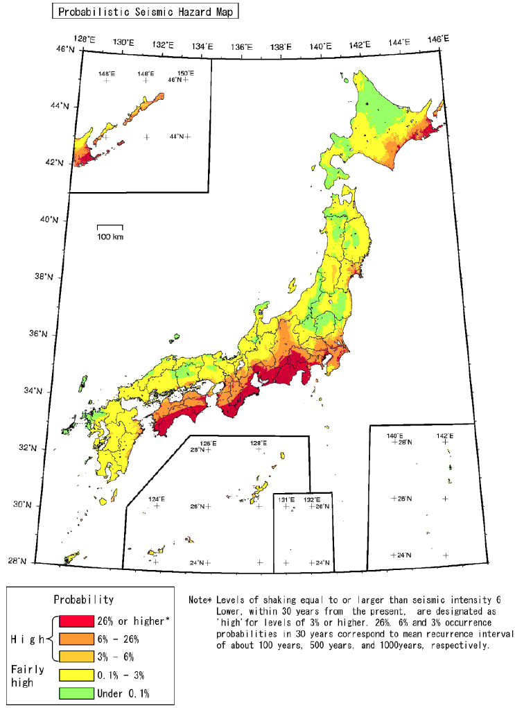 Of the wide variety of earthquakes, only a fraction offers enough information to specify the seismic source fault. Many other earthquakes with no such information can cause strong seismic ground motions. The "Probabilistic Seismic Hazard Maps" show the relationship among the intensity, time period, and probability at each point.