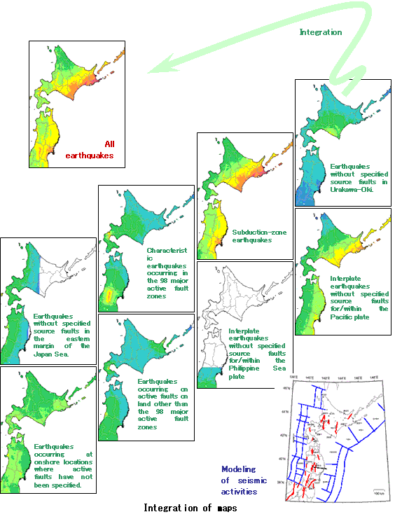 The "Probabilistic Seismic Hazard Map" integrates information related to intensity, time period, and probability at each point evaluated in each of a wide variety of earthquakes; this information can be broken down.